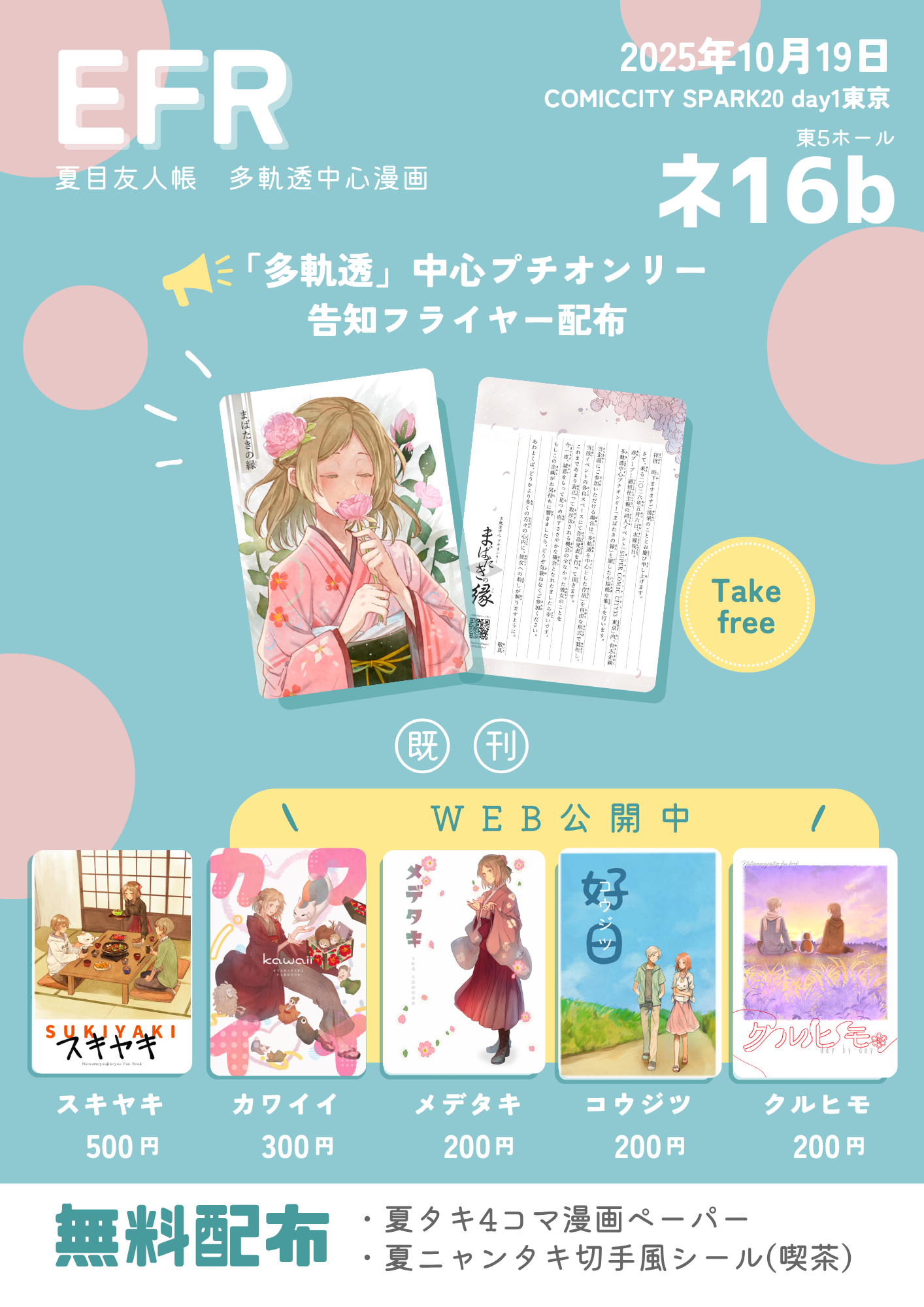 そして。コミケしか参加しない系統の友人たちがまたしてもカンパしてくれた新刊カードのおかげで、5月6日のプチオンリーの日程に合わせて夏目友人帳ジャンルオンリーも開催できそうです。